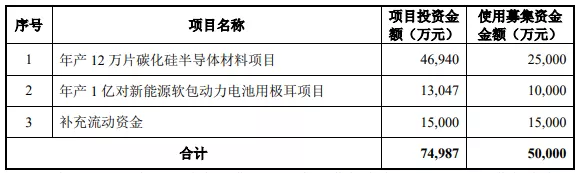 其中碳化硅半导体材料项目总投资额4.69亿元,由东尼电子直接负责实施,项目建设期36个月,项目建设完成后,将年产12万片碳化硅半导体材料,完全达产当年可实现年营业收入7.78亿元,净利润9589.63万元。